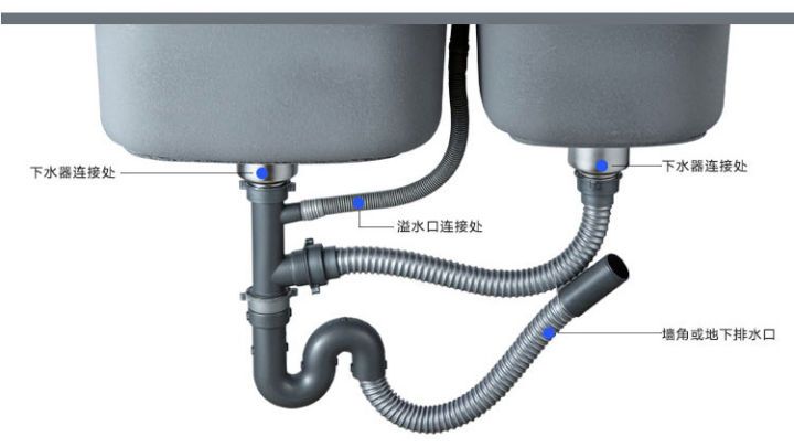 、 洗菜區(qū)電路規(guī)劃   水槽下方預(yù)留1個插座離地550mm,用于凈水器,如果安裝垃圾處理器則多預(yù)留一個。 凈水器安裝示意圖 注:反滲透凈水器出來的“廢水”還可以接入到衛(wèi)生間的水箱處,有興趣的朋友可以自己研究一下。 垃圾處理器安裝示意圖 可預(yù)留燈帶的插座在吊柜內(nèi)(離地1645) 切菜/炒菜區(qū)電路規(guī)劃 油煙機(jī)安裝高度建議 側(cè)吸式:870~920mm; 非側(cè)吸式:650~700mm。 擺放電器的臺面插座數(shù)量預(yù)留多點,盡量帶開關(guān)。 水電管交叉時怎么處理?   如果水管在上,當(dāng)出現(xiàn)冷凝水,可能使電線受潮,出現(xiàn)短路、跳閘的情況(雖然概率非常低),所以建議水管在下。 走天的水電可以直接分層走線,電在上。 走地可以切開水管,安裝一個過橋彎繞下方,將電線靠在水管的上方。 深入探討   關(guān)于提高吊柜利用率的方法探討,通過加寬臺面,降低吊柜,可以在使用櫥柜的時候更加舒適,前提是需要廚房寬度足夠大能讓臺面延展到75mm,有得有失,看個人選擇。