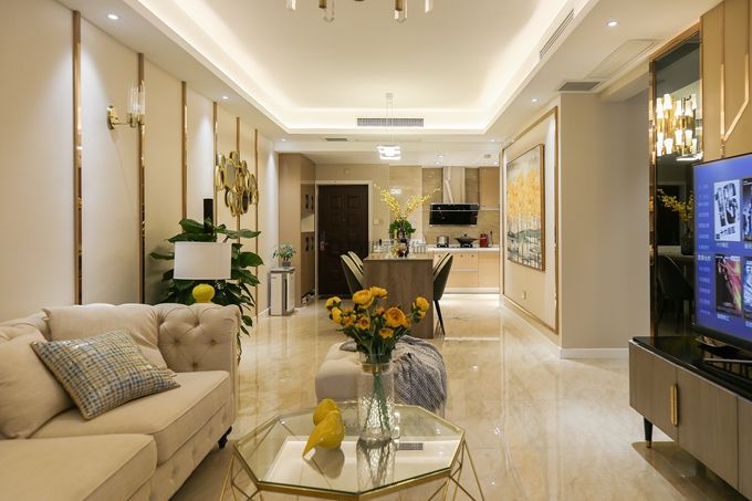 香檳色的金屬線條勾勒幾何造型,以簡約經(jīng)典詮釋時尚生活。局部的細節(jié)裝飾也讓空間多了一絲奢華氣息。