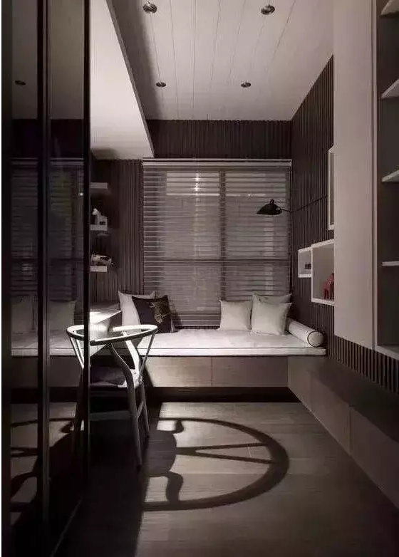 樂尚裝飾洪金寶還可以給到你這樣一個建議,可以在榻榻米地臺的下方加上燈帶,更為帥氣。這樣的榻榻米地臺上方空間也可以做一些隔板來收納,代替床頭柜的功能真的特別時尚了,喜歡的快點裝起來吧。
