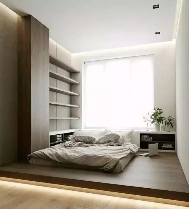所以也有許多的屋主會選擇把整個房間給改成榻榻米地臺,這樣收納和安全性都有,把床給放在榻榻米地臺的一角,也會影響底部收納空間的使用。