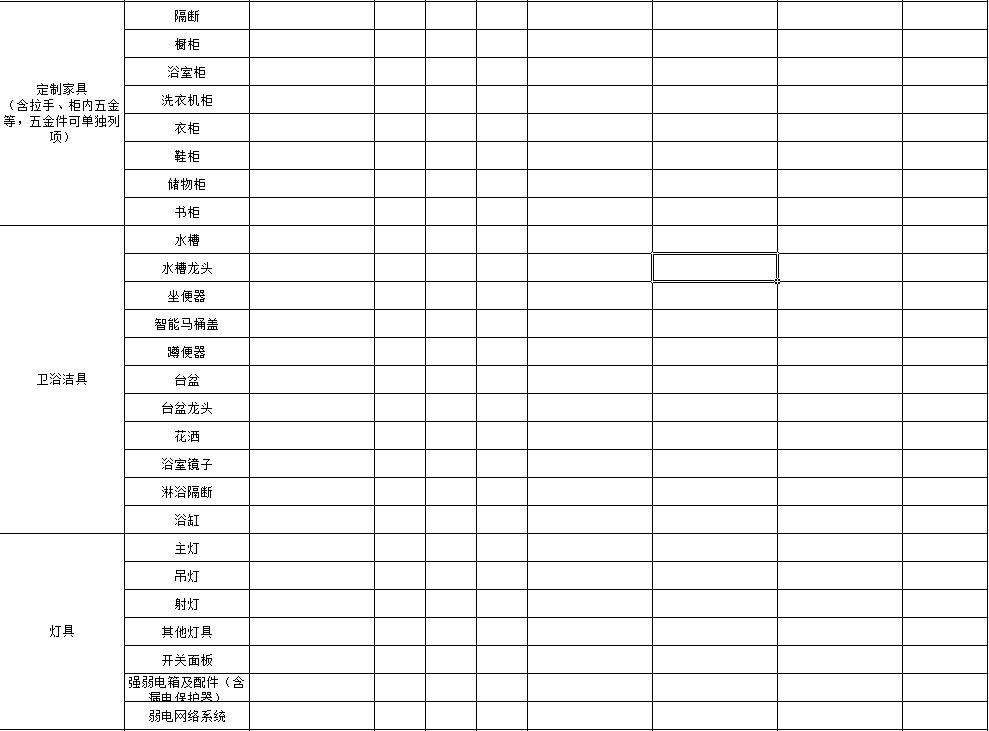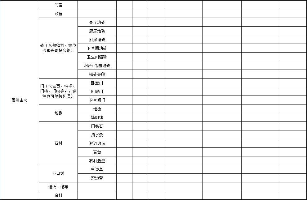 詳細(xì)的裝修預(yù)算表包括哪些2、硬裝主材