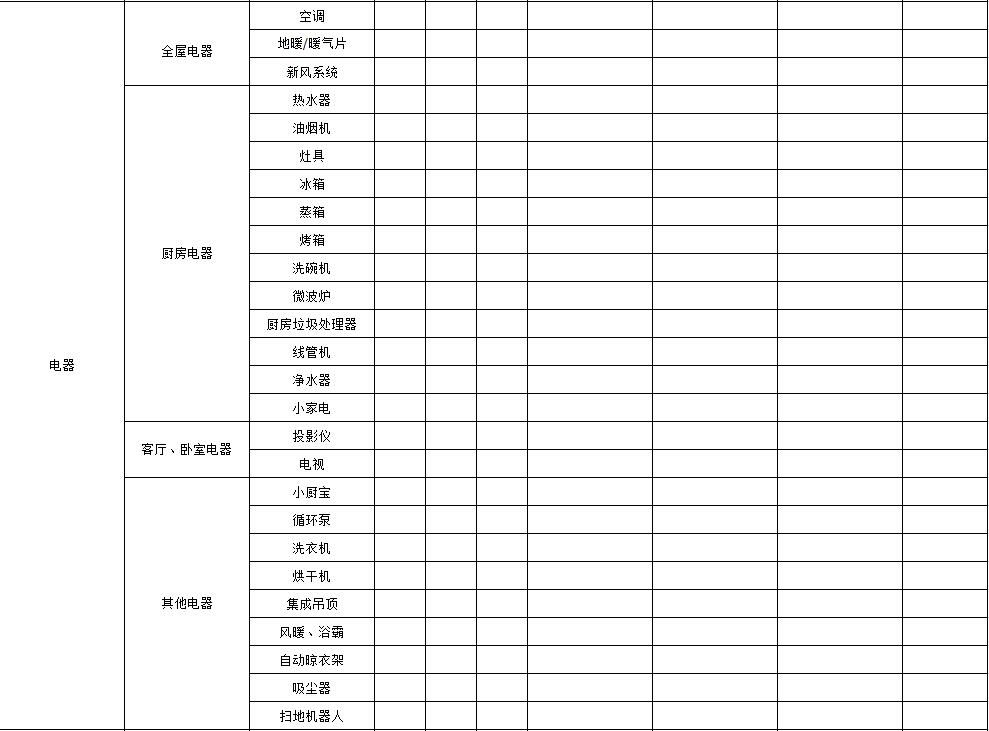 詳細(xì)的裝修預(yù)算表包括哪些3、家具家電