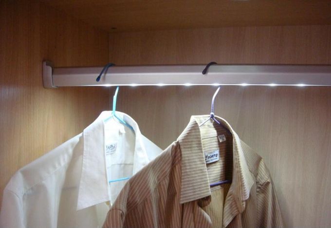 盡管臥室頂部有主燈設(shè)計(jì),但是站在衣柜前的你會(huì)以你的身子擋住光源,所以衣柜內(nèi)仍是一片黑暗,看不清楚,翻找衣物十分不便。那么在衣柜內(nèi)安裝一個(gè)感應(yīng)燈還是很方便的。
