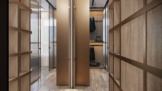 防潮、防霉對于衣帽間來說也是非常重要的,首先考慮空氣的流通問題,避免潮濕季節(jié)發(fā)生蟲蛀、發(fā)霉等現(xiàn)象,為達(dá)到這個目的,如果是單獨的衣帽間,把門設(shè)計成百葉格狀,既可以保持客氣流通,還能節(jié)省空間。