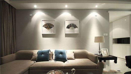 射燈照在墻上,冷色調(diào)也有了暖暖的感覺。