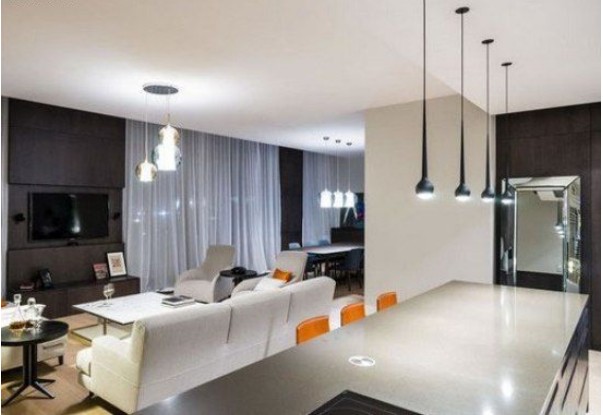 從廚房的方位看客廳,細(xì)長(zhǎng)的客廳中窗戶上白色的半透明紗質(zhì)窗布很招眼。數(shù)量不多的吊燈點(diǎn)亮了整個(gè)空間。白色的沙發(fā)也越發(fā)的白,遠(yuǎn)處的餐廳也被歸入眼底,重慶家裝網(wǎng)最好的亮點(diǎn)。