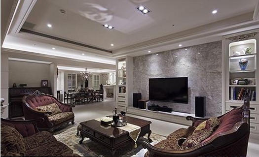 ▍大戶型客廳裝修效果圖 大戶型裝修設(shè)計(jì)效果圖 沙發(fā)等大型家具的選購(gòu),往往具有左右空間氛圍的重量級(jí)分量,以此客廳為例,屋主入手多年的頂級(jí)沙發(fā),經(jīng)典款的線條與品味具有傳世價(jià)值,因此周遭的設(shè)計(jì),包含天花板、燈光與展示柜體,皆須考量沙發(fā)風(fēng)格來(lái)做規(guī)劃,讓沙發(fā)完美融入整體設(shè)計(jì)中