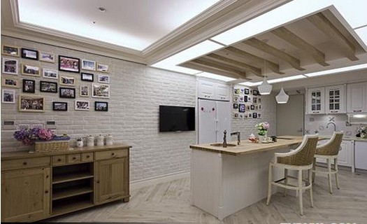 ▍大戶型廚房裝修效果圖 大戶型裝修設(shè)計(jì)效果圖 這個(gè)案子較特別的是,女主人希望能有鄉(xiāng)村風(fēng)氛圍的廚房,因此將工作檯融入廚房的規(guī)畫中,而文化石牆面、木作格柵天花與大面木紋磚地坪,在在都能表現(xiàn)鄉(xiāng)村風(fēng)的溫馨質(zhì)感,家人也可在工作檯上一起用餐,光看廚房就好有畫面。 大戶型裝修設(shè)計(jì)效果圖 周建志設(shè)計(jì)師提醒,「大坪數(shù)的空間規(guī)劃建議從家俱著手」,因?yàn)榧揖憧梢蕴舻某叽纭⒎秶容^大一點(diǎn),當(dāng)家俱定調(diào)時(shí),設(shè)計(jì)風(fēng)格就出來(lái)了,另外,在大坪數(shù)的每個(gè)空間裡,最好也都能有設(shè)計(jì)主軸跟主題。