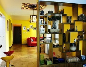 Part2:用實(shí)體分隔空間 私密與開放兼?zhèn)?br />     除了實(shí)體墻進(jìn)行空間分隔外,更多人想到的是屏風(fēng)、移門等,的確利用一些不到頂或者鏤空的裝修來劃分不同的空間,這種實(shí)體的分割形式讓空間的私密性與開放性兩者兼得。
