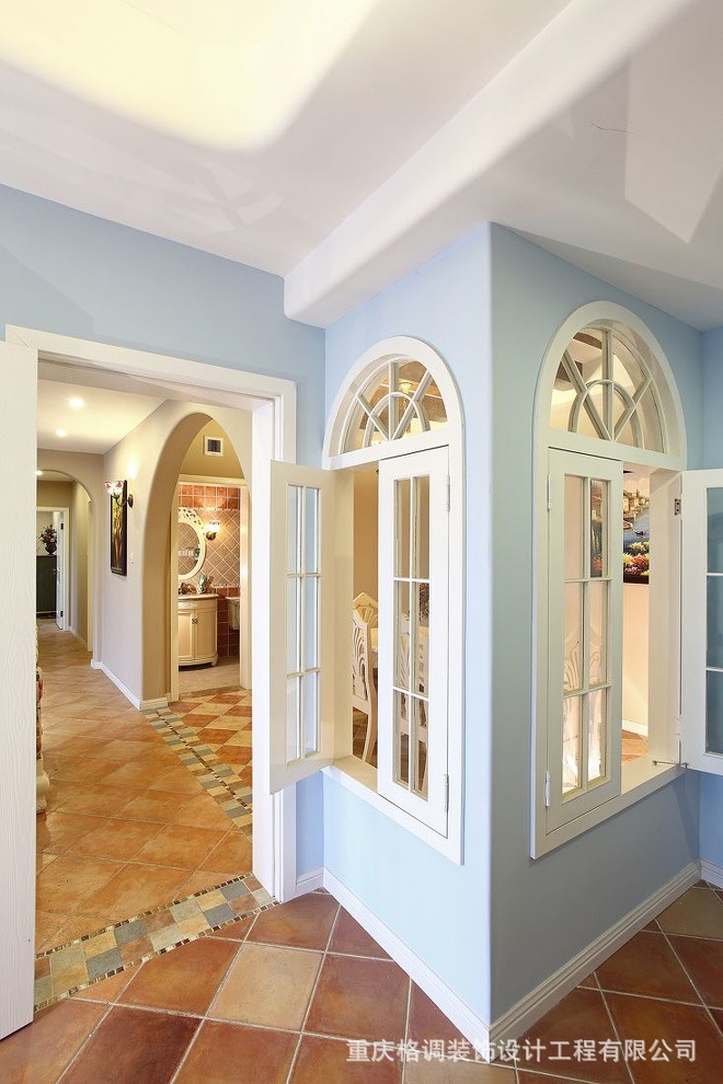 設(shè)計(jì)背景:地中海風(fēng)格,加點(diǎn)田園,就想要這樣一種溫馨的家,不喜歡現(xiàn)代簡潔風(fēng)格,感覺冷冷的。整個(gè)空間是相當(dāng)?shù)膶挸ǖ?,主要的田園風(fēng)表現(xiàn)在客廳和餐廳,碎花的沙發(fā),木質(zhì)材質(zhì)的餐桌椅,難得的休閑??!