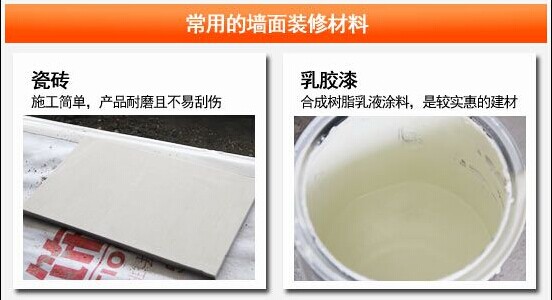 瓷磚,大都運(yùn)用于廚房、茅廁,陽臺(tái)等地方的墻面。它最大的益處是耐臟,而且耐酸堿、耐磨、不容易刮傷及防火防潮的特性,尤為容易保養(yǎng)。乳膠漆,是古代極受歡迎的墻面裝修原料,是今朝墻面處理的主流。壁紙,也是相稱的遍布,壁紙圖案瞬息萬變,信譽(yù)豐碩,且施工方便神速,遭到許多消費(fèi)者的青睞。